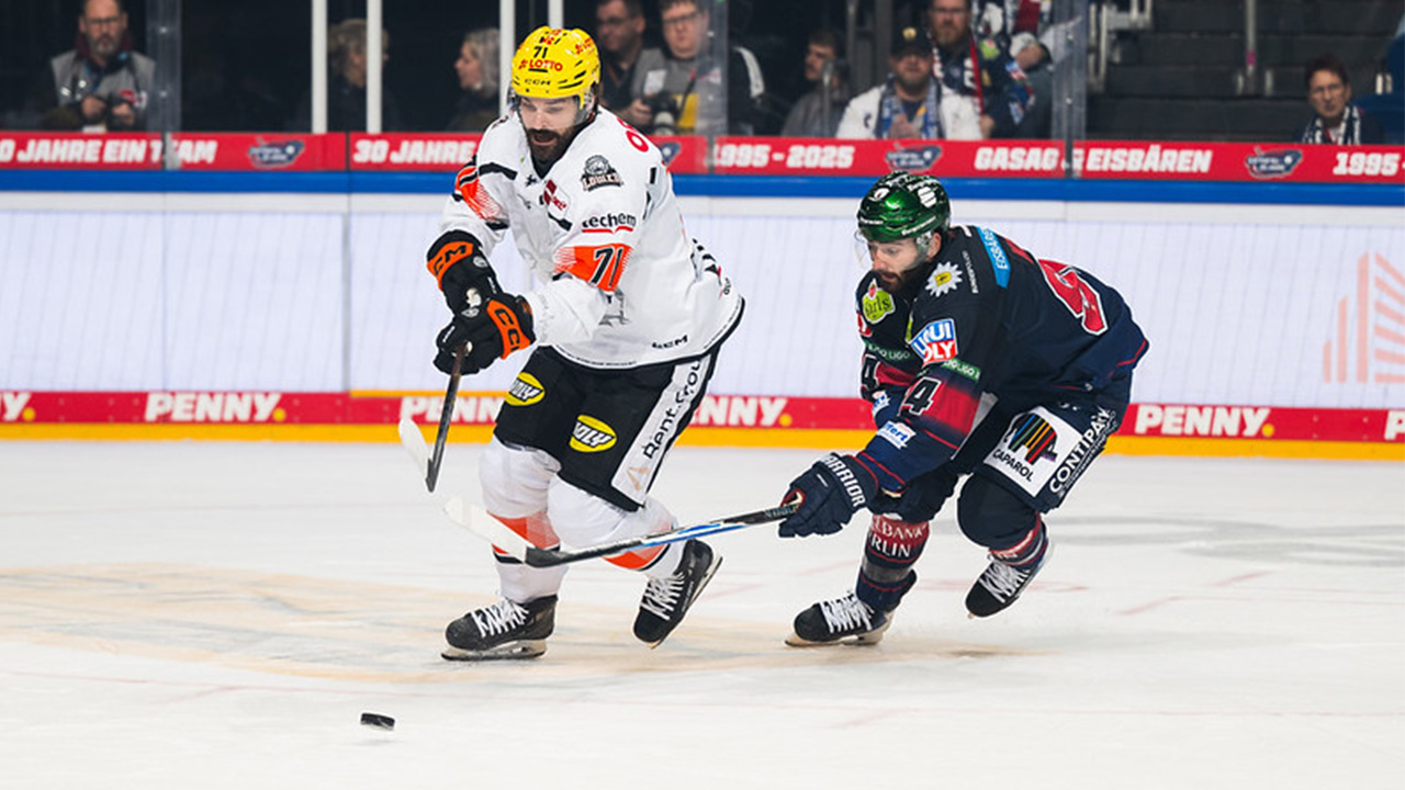 Berlin (DJ) – Ein Schritt, ein „unlucky bounce“ und ein Eigentor. Gleich drei unglückliche Szenen ereilten die Löwen beim Auswärtsspiel in Berlin und besiegelten so eine 4:2-Niederlage am 19. Spieltag der laufenden PENNY DEL-Saison. 12.915 Zuschauer in Berlins Uber Arena sahen dennoch ein gutes Auswärtsspiel der Löwen, die sich trotz aller Widrigkeiten nie aufgaben und dem amtierenden Meister nichts schenkten- auch dank eines abermals überragenden Mirko Pantkowski im Tor (31 Saves; 91,18 % Sv). Die Tore für die Löwen erzielten Maksim Matushkin und Noah Dunham.